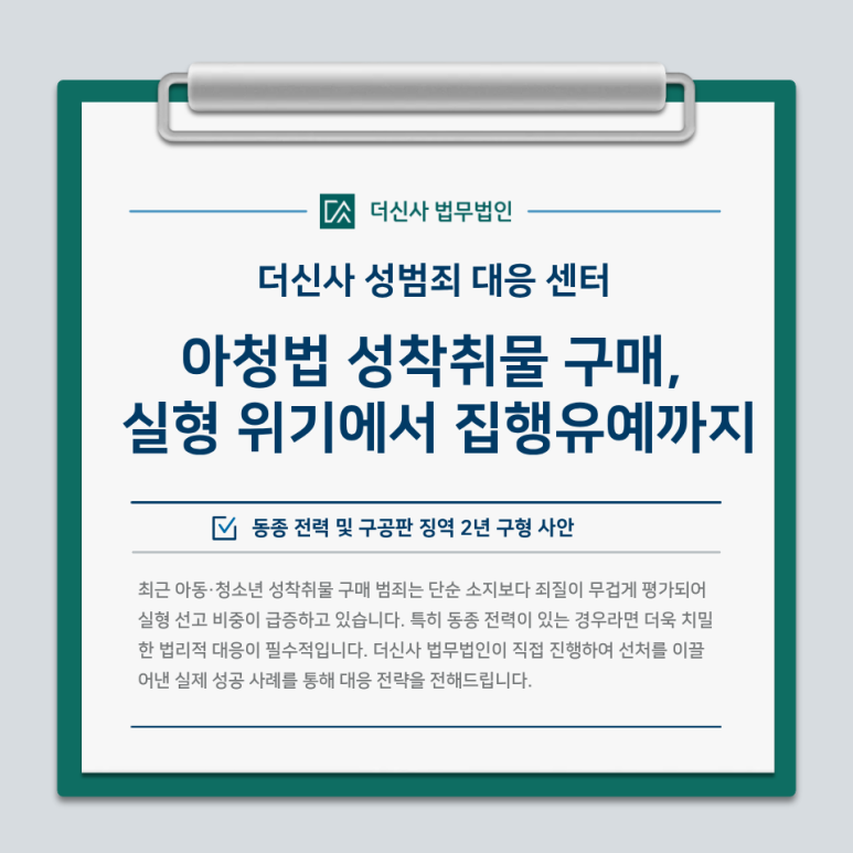 특히 성착취물을 단순 시청하는 것을 넘어 직접 구매한 경우에는 최근 법원에서 실형을 선고하는 비중이 눈에 띄게 늘고 있어 주의가 필요합니다.