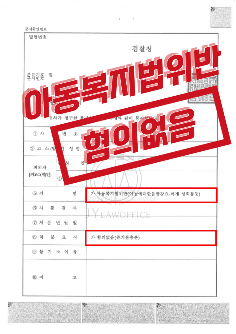 [성공사례] 아동복지법 위반(아동에 대한 음행 강요·매개·성희롱등) - 혐의없음