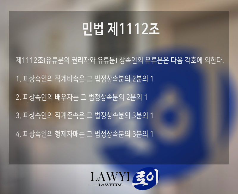 우리는 유류분청구를 통하여 아무리 부모님께서 유증으로 재산을 장남에게 다 물려주어도 유류분을 통하여 보호를 받을 수 있는 것을 배웠습니다. 그렇다면 유류분 청구를 통해서 나의 상속지분 전액을 받을 수 있을까요? 이 부분에 대하여는 민법 제1112조를 통해 확인할 수 있습니다.