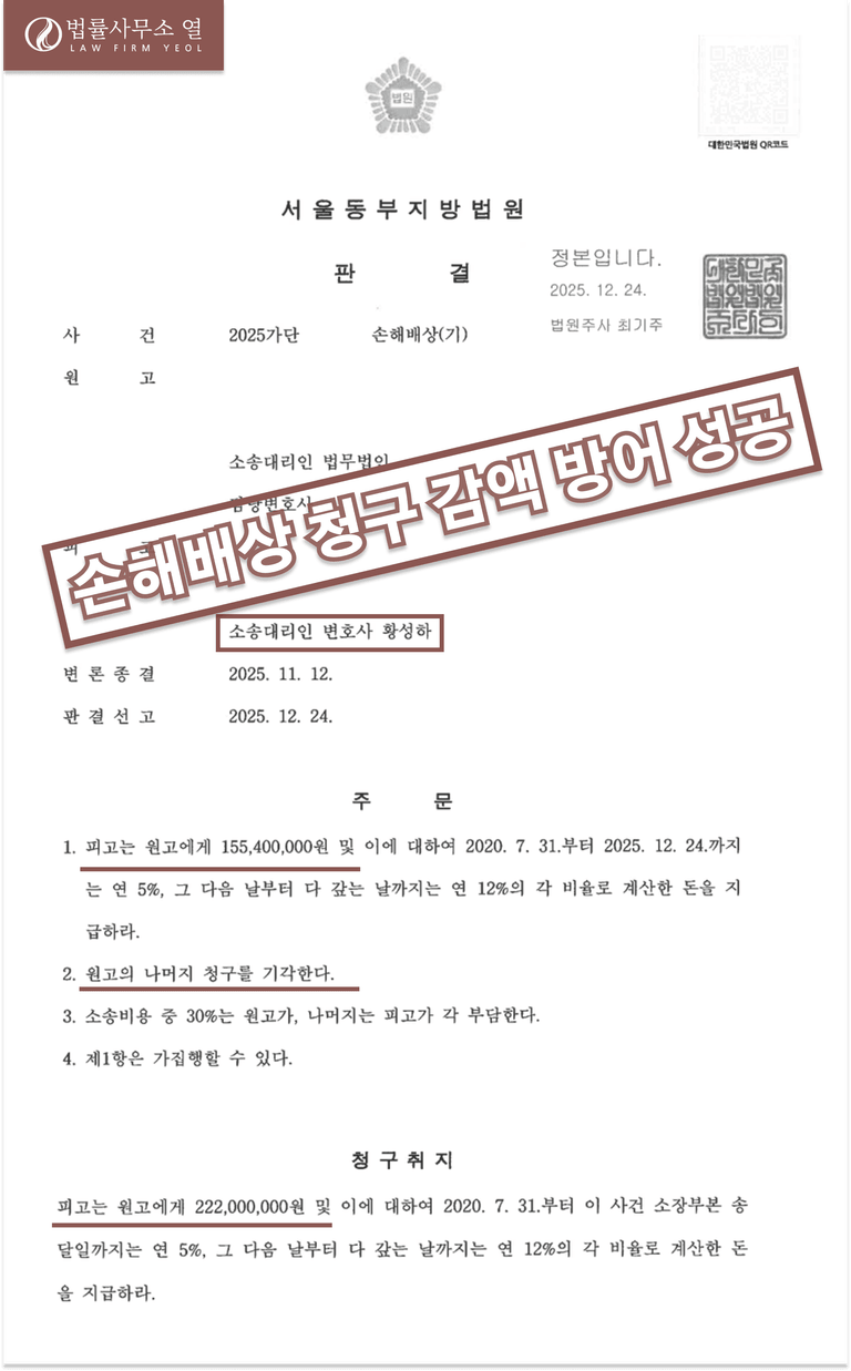 2억 2,200만 원 청구 중, 약 7천만 원 감액 성공