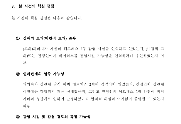 ③ 성관계로 인해 피의자로부터 피해자에게 바이러스가 전염되었다는 점