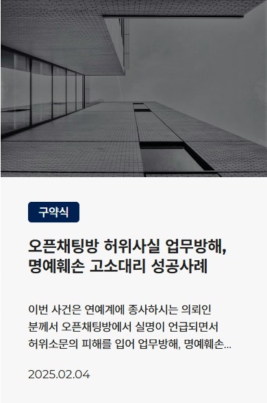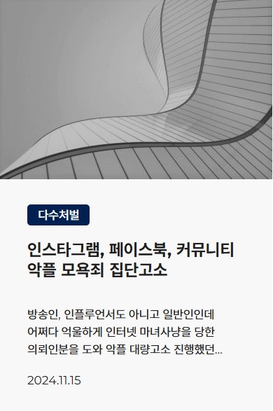 이는 실제로 저희가 사이버 명예훼손, 모욕죄 분야에서 다수 성공사례를 보유하고 있기에 자신있게 말씀드리는 부분인데요.