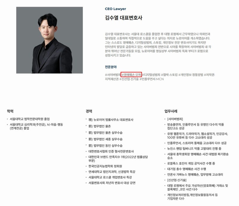 뉴로이어 법률사무소 김수열 대표변호사입니다.