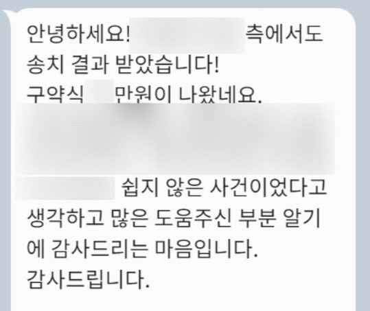 의뢰인께서 보내주신 소중한 감사 후기입니다 :)