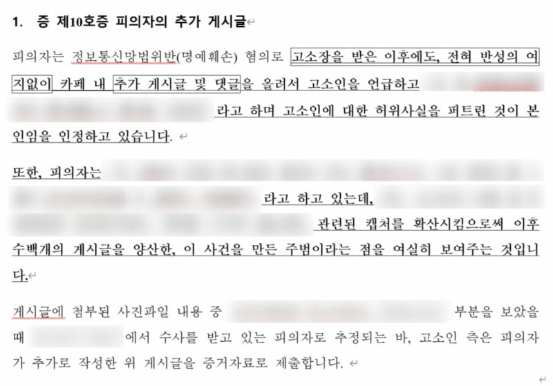저희가 실제로 작성했던 고소장 내용 중 일부