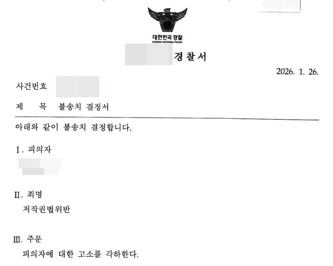 오늘은 유튜브 쇼츠 저작권법 위반 고소를 당했음에도 경찰 출석 없이 불송치(혐의없음)로 종결된 실제 사례를 소개해 드립니다.