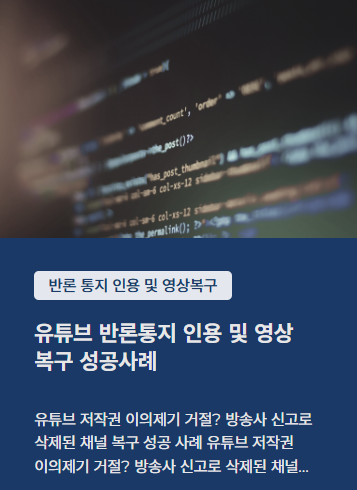 혹시 지금 유튜브 저작권 문제로 고소를 당하셨거나, 영상 삭제 계정 정지 등으로 고민하고 계시다면 혼자 판단하기보다 초기에 정확한 방향을 잡는 것이 가장 중요합니다.