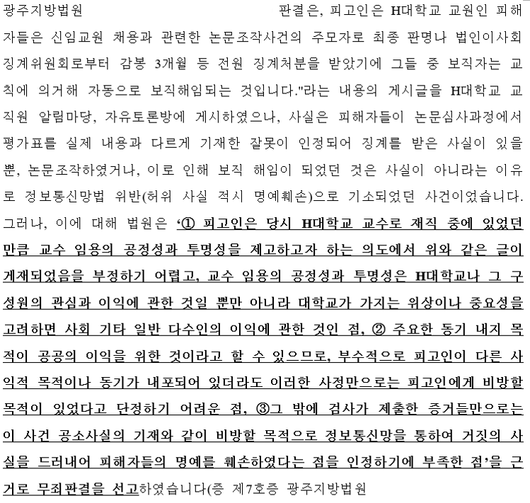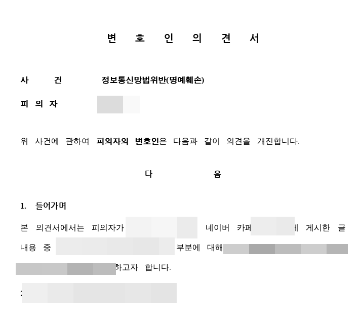 명예훼손 피의자변호 성공사례 중 일부