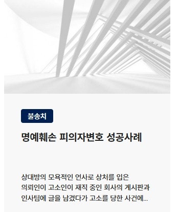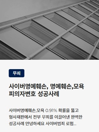 ![[명예훼손]명예훼손 이의신청 재수사, 무혐의로 방어한사례](/_next/image?url=https%3A%2F%2Fd2ai3ajp99ywjy.cloudfront.net%2Fuploads%2Ftitleimage%2Foriginal%2F5f10247ba2f0f301e1483f6b-original.jpg&w=3840&q=75)