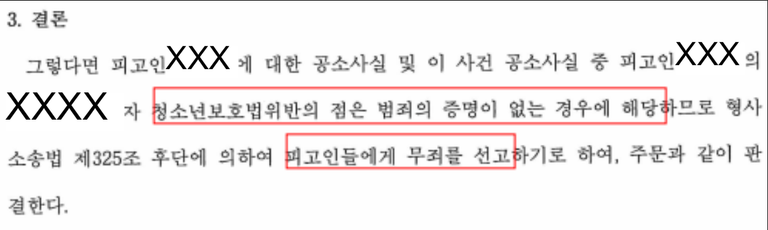 결론 : 청소년보호법위반죄에 대해 무죄 판결 선고