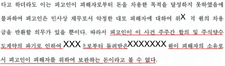 결론적으로, 법원은 "고소인이 지급한 주식양수도대금은 피고인에게 공동사업을 위한 자금을 대여한 것이므로 주식양수도계약이 파기되었다고 하더라도 이는 피고인이 고소인으로부터 돈을 차용한 목적을 달성하지 못하였음에 불과하여 피고인은 민사상 채무로서 약정한 대로 고소인에 대하여 위 차용금을 반환할 의무가 있을 뿐이고, 따라서 피고인이 주식양수도계약의 파기로 인하여 돌려받은 금원이 고소인의 소유로서 피고인이 고소인을 위하여 보관하는 돈이라고 볼 수 없다"고 하여, 특정경제범죄가중처벌등에관한법률위반(횡령) 고소 사건 항소심에 대하여 무죄 취지로 검사의 항소를 기각하는 판결을 선고하였습니다.