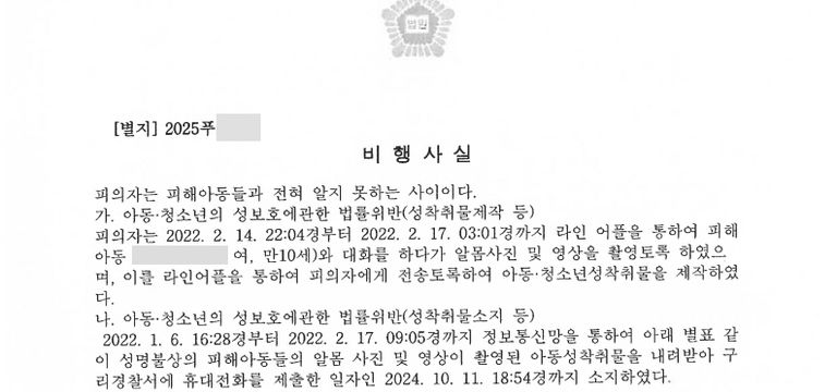 학생인 의뢰인(보호소년)은 2022년경 모바일 메신저(라인)를 통해 알게 된 만 10세의 아동에게 알몸 사진과 영상을 촬영하여 전송하도록 함으로써 성착취물을 제작하고 , 다수의 아동 성착취물을 내려받아 휴대전화에 소지한 혐의로 재판을 받게 되었습니다. 본 사건은 아동·청소년의 성보호에 관한 법률 위반(성착취물 제작·소지 등)에 해당하는 매우 엄중한 사안이었습니다.