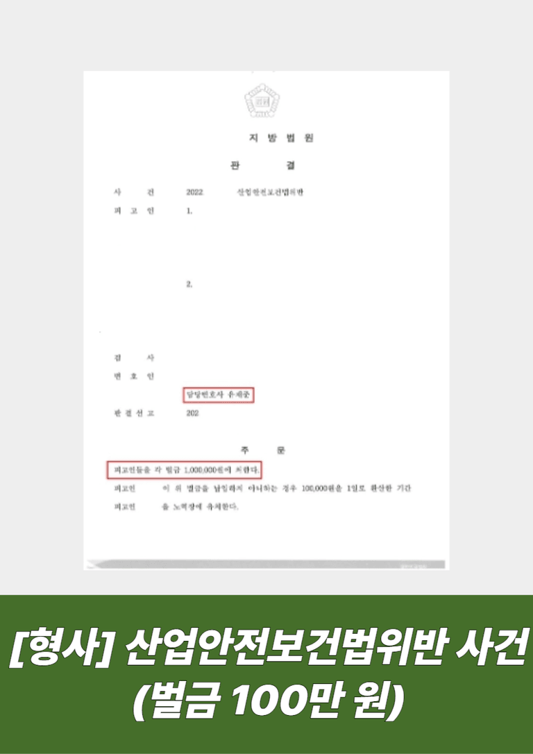 이 결과는 단순히 운이 좋았기 때문이 아니라, 조사 단계부터 진술을 관리하고, 피해 회복을 신속히 진행하며, 재판에서 개선 의지와 재발 방지 자료를 체계적으로 제출한 대응이 있었기 때문에 가능했습니다. 즉, 산업안전보건법 위반 사건에서는 사고 발생 이후의 태도와 초기 대응이 실제 결과를 바꿀 수 있다는 점이 확인된 사례였습니다.