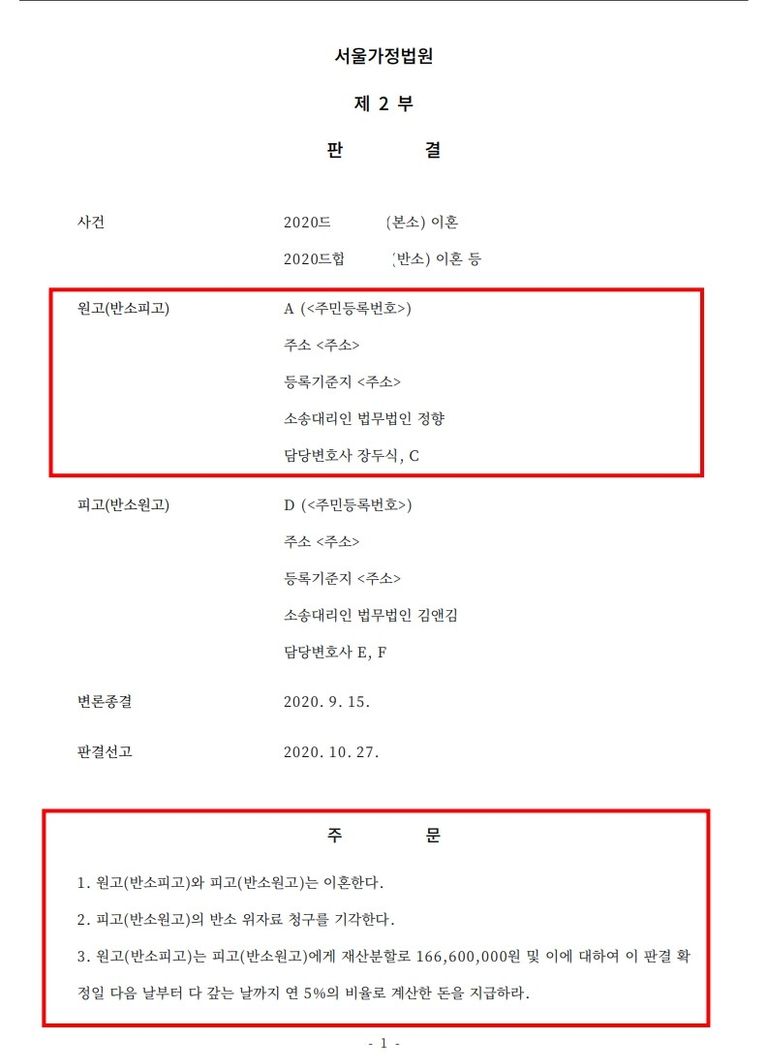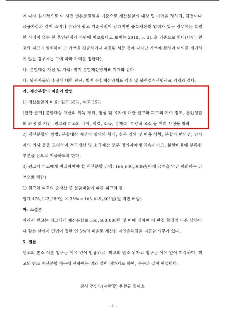 재판결과 상대방 재산분할 기여도 35%, 위자료 반소청구 모두 기각시키는 결과를 받았습니다.
