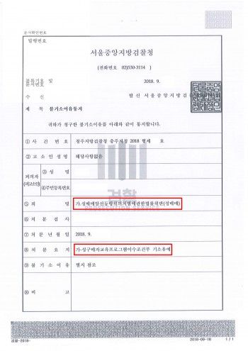 ◻ 검찰의 처분결과