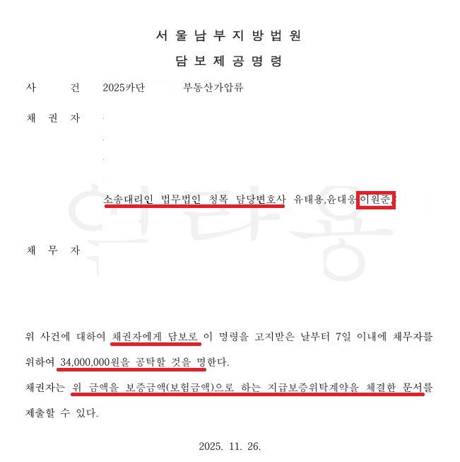 ![[부동산가압류] '현금공탁 없이' 보전처분 인용](/_next/image?url=https%3A%2F%2Fd2ai3ajp99ywjy.cloudfront.net%2Fuploads%2Ftitleimage%2Foriginal%2F5c2ec4dad664b0772b01bd4a-original.jpg&w=3840&q=75)