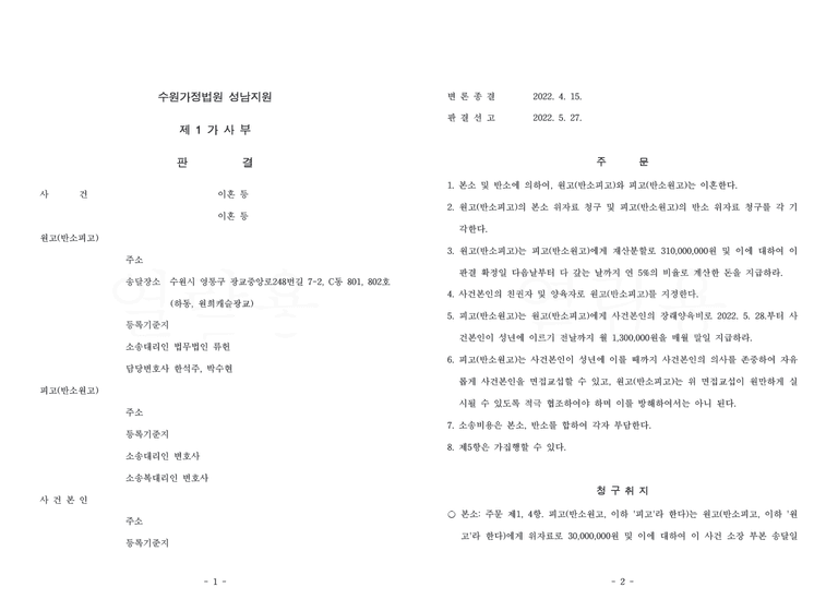 아울러 의뢰인은 자녀에 대한 친권 및 양육권을 모두 확보하였으며, 자녀가 성년에 이를 때까지 월 130만 원의 양육비 역시 인정받았습니다.