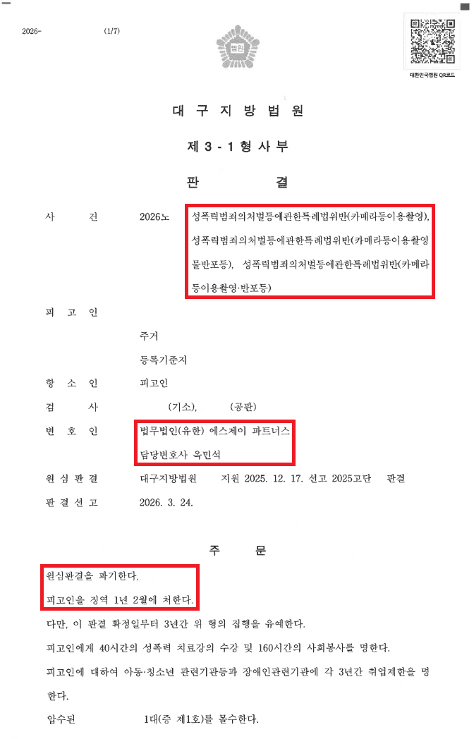 ![[카메라등이용촬영등] 총 5명의 피해자를 몰래 촬영하고 유포](/_next/image?url=https%3A%2F%2Fd2ai3ajp99ywjy.cloudfront.net%2Fuploads%2Ftitleimage%2Foriginal%2F5c6b97ad89f37c09d00a2743-original.jpg&w=3840&q=75)