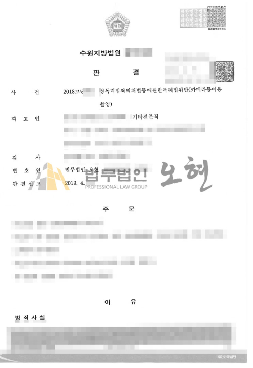 의뢰인은 위 사건으로 인하여 카메라등이용촬영죄 유죄 판결 및 취업제한 명령을 받게 되는 경우, 현재 재직 중인 병원에서 퇴직되는 상황이었습니다. 또한 현행 아동청소년성보호에관한법률 상 병원의 경우, 아동청소년 대상 진료인지를 불문하고 취업제한 명령이 내려지는 경우 취업이 불가능한 기관에 속합니다. 따라서 의뢰인 A씨는 자신의 혐의를 인정하면서도, 굉장히 절실하게 취업제한 명령을 피하여 본인의 직업을 계속 영위하고자 하였습니다.