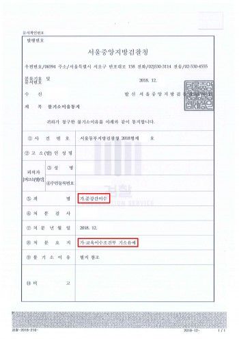 ◻ 검찰의 처분결과