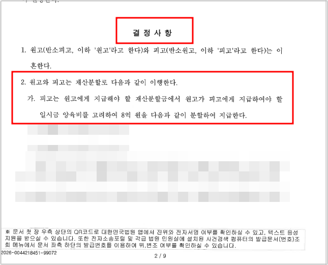또한 두 아들에 대한 양육비를 받지 않는 조건으로 재산분할금을 9억을 지급하는 것으로 합의점을 찾게 되었습니다.