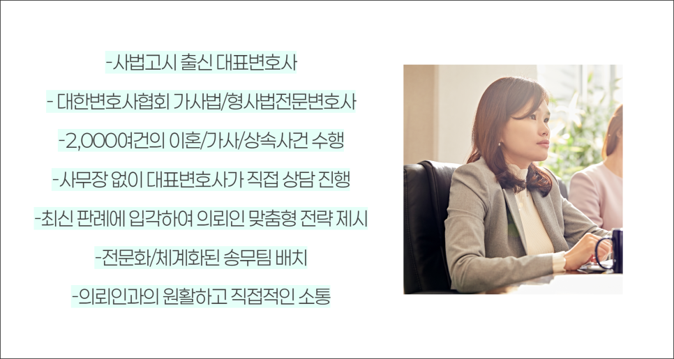 하지만, 두분이 아이들을 위해서 협의점을 찾았고, 재산분할에 있어서 특유재산 및 기여도를 법리에 비추어 적극적으로 주장 한 결과 원만하게 합의를 할 수 있게 되었습니다.