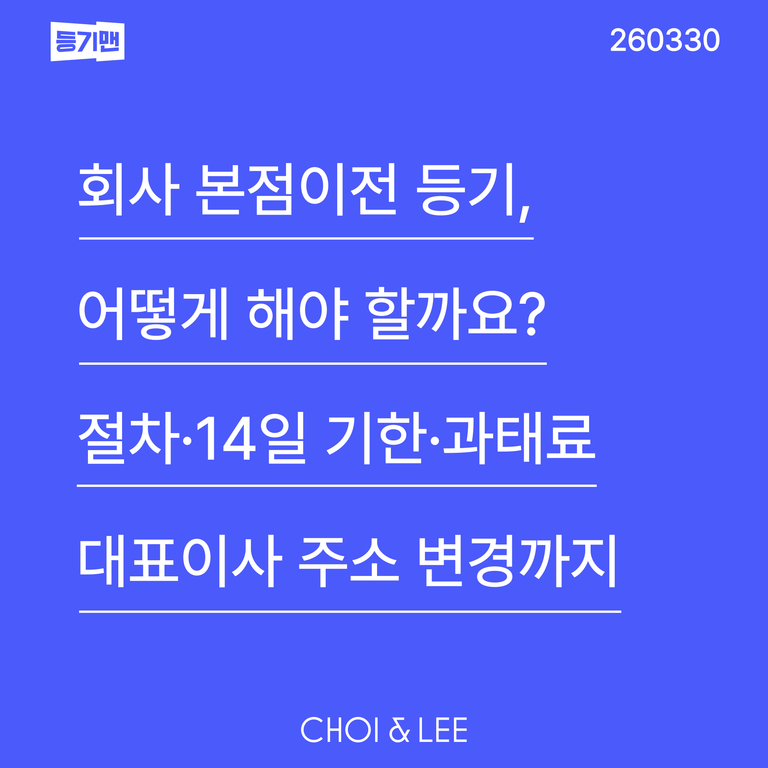 회사를 운영하다 보면 임원변경등기만큼 자주 나오는 것이 회사 본점 주소 변경 등기입니다. 사업이 번창해서 더 넓은 사무실로 옮기기도 하고, 임대차계약 만료나 비용 문제로 이전하기도 하지요. 그런데 의외로 많은 회사가 이사 자체만 챙기고, 본점이전 변경등기는 뒤로 미뤘다가 과태료 문제를 겪습니다.