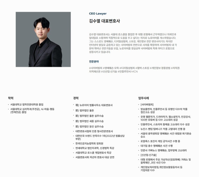 뉴로이어법률사무소의 김수열 대표변호사님입니다 :)