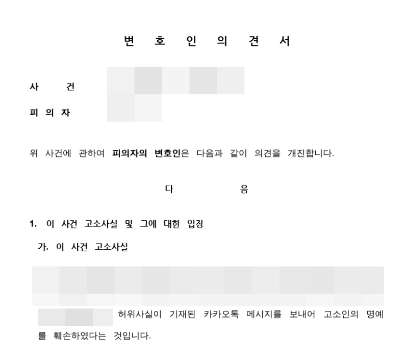 저희가 제출한 변호인 의견서 중 일부