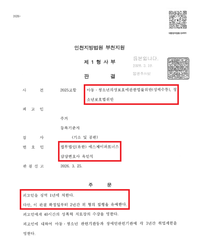 ![[아청법위반(성매수등)등] 12세 여중생과 '술댈구'로 조건만남](/_next/image?url=https%3A%2F%2Fd2ai3ajp99ywjy.cloudfront.net%2Fuploads%2Ftitleimage%2Foriginal%2F5c4983d59c4c2967af3a5fbc-original.jpg&w=3840&q=75)