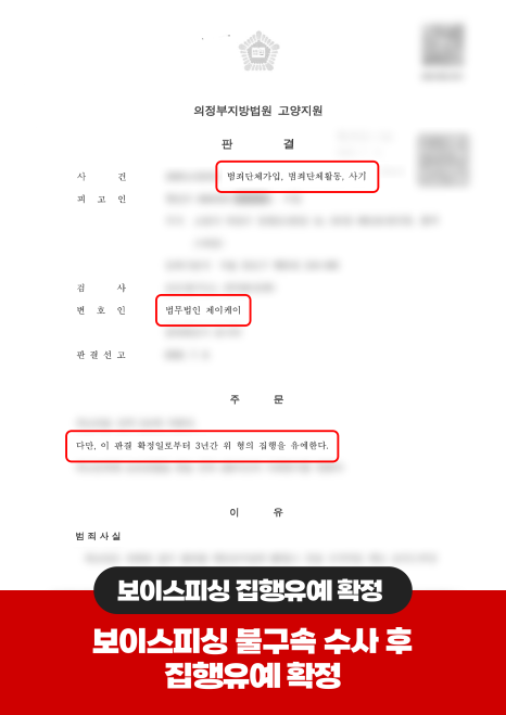 ![[형사전담센터] 보이스피싱 구속영장 기각 및 집행유예](/_next/image?url=https%3A%2F%2Fd2ai3ajp99ywjy.cloudfront.net%2Fuploads%2Ftitleimage%2Foriginal%2F5c7d423bdd1ed43199552437-original.jpg&w=3840&q=75)