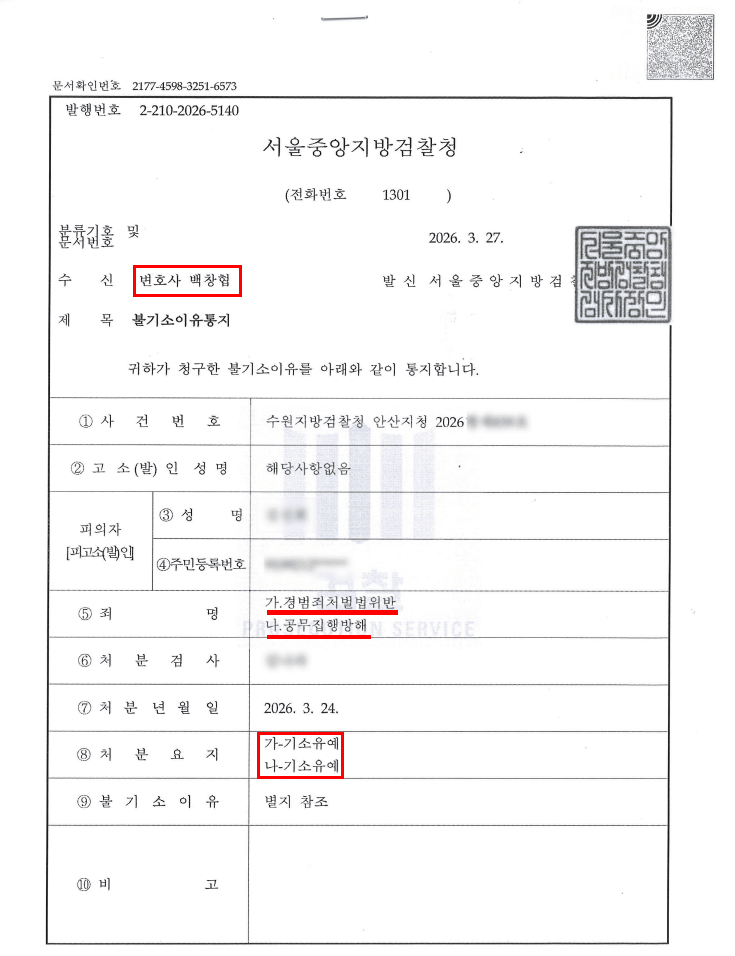 다행히 검찰은 합의가 되지 않았음에도 불구하고 피의자에게 기소유예 처분을 하였습니다.
