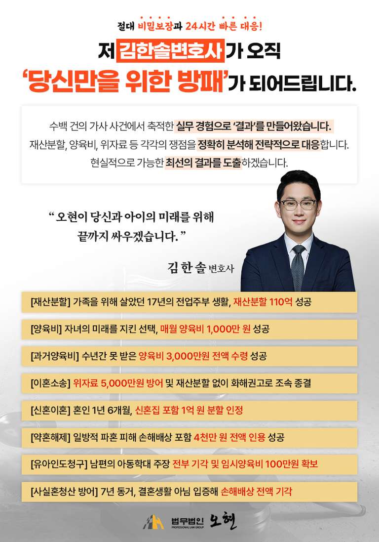 이에 법무법인 오현은 우선 상대방의 부정행위 사실을 객관적인 자료와 정황 증거를 통해 면밀히 입증하며 혼인 파탄의 귀책이 상대방에게 있다는 점을 분명히 하였습니다.