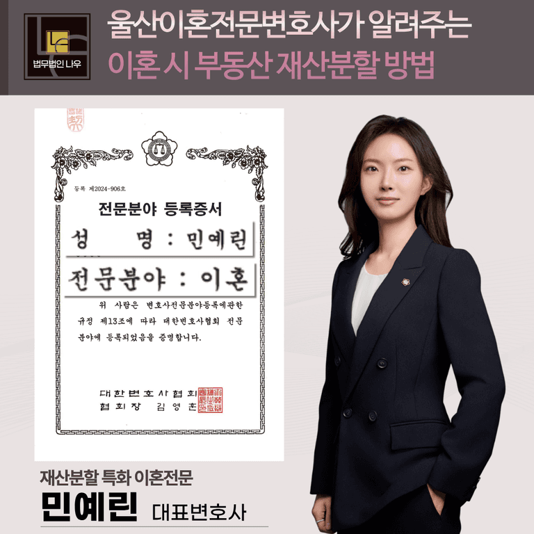 안녕하세요, 울산이혼전문변호사 울산재산분할변호사 법무법인 나우 민예린 대표변호사입니다.