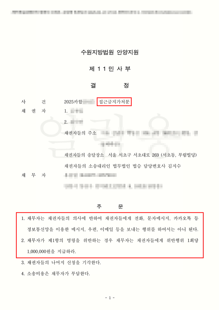또한, 금지 명령에 그치지 않고 강력한 금액의 간접강제를 함께 이끌어냄으로써 가해자의 추가적인 범행 의지를 실질적으로 꺾을 수 있는 교두보를 마련했습니다.