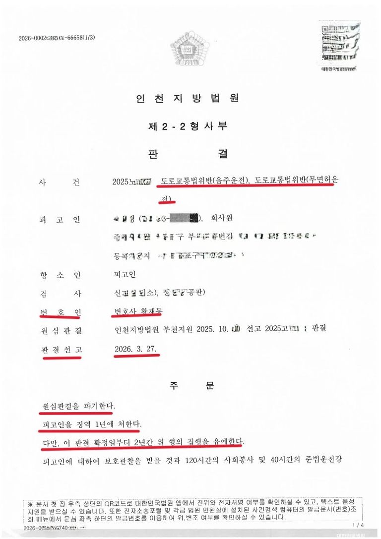 2026. 3. 23. 1심에서 음주, 무면허운전 혐의로 징역 1년의 실형을 선고받았으나, 항소심에서 집행유예형을 선고받은 너무나 기분 좋은 성공사례가 있어 이렇게 글을 적어봅니다.