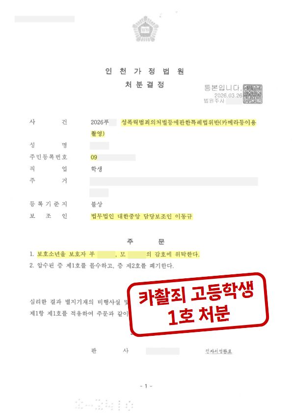 카메라등이용촬영죄와 같은 성범죄는 소년 사건이라 할지라도 그 죄질에 따라 무거운 보호처분이 내려질 가능성이 매우 높습니다. 특히 화장실과 같은 밀폐된 공간에서의 촬영은 엄히 다스려지는 추세입니다.