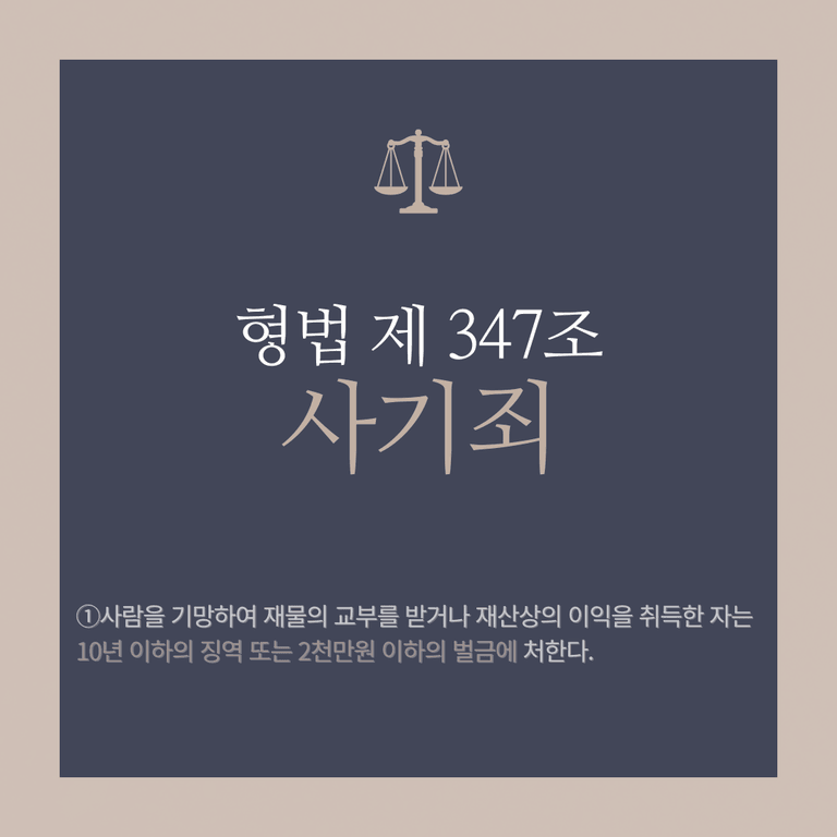 ①사람을 기망하여 재물의 교부를 받거나 재산상의 이익을 취득한 자는 10년 이하의 징역 또는 2천만원 이하의 벌금에 처한다.