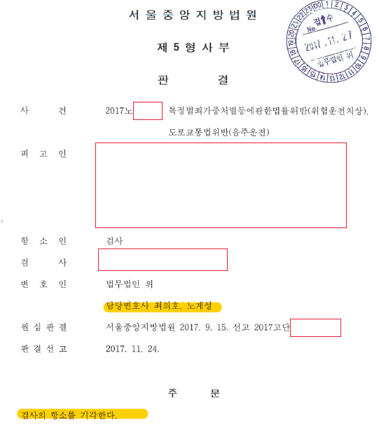 적극적으로 대응하여, 검찰의 항소를 기각시키고 기존 판결을 그대로 확정시킨 사례입니다.