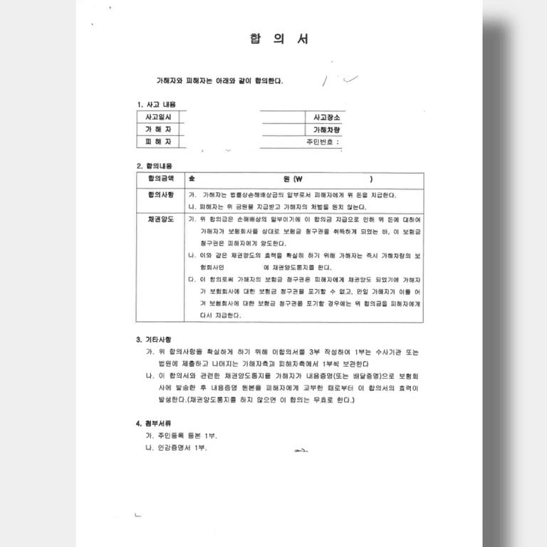 자동차합의서는 단순한 서류가 아니라 사고 이후 책임과 보상 범위를 결정하는