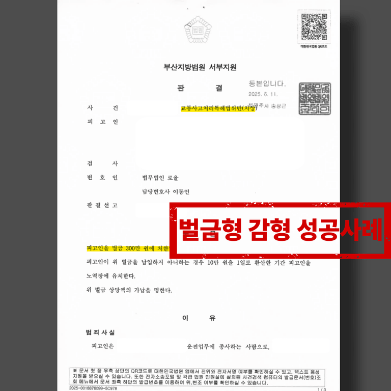 미미한 벌금형 300만 원으로 마무리될 수 있었습니다.