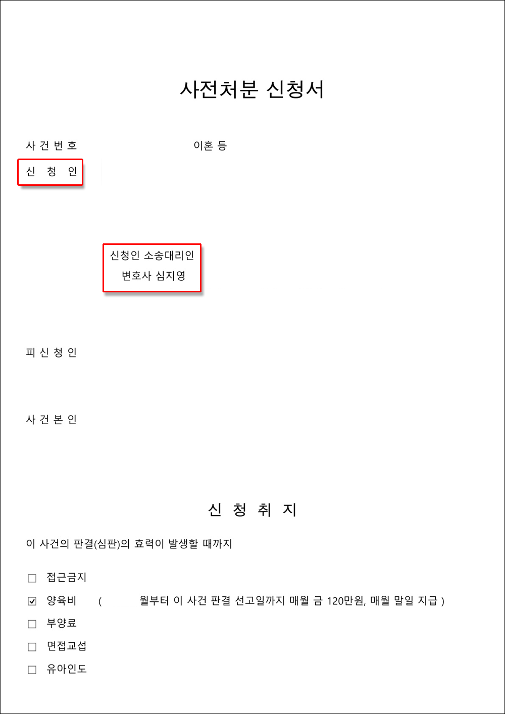(🔻아래는 본 사건에서 심지영 변호사가 실제 제출한 사전처분 신청서 내용 일부입니다)