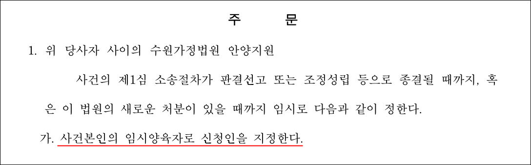 아버지를 임시양육자로 지정하고, 최종적으로 친권자 및 양육자로 인정