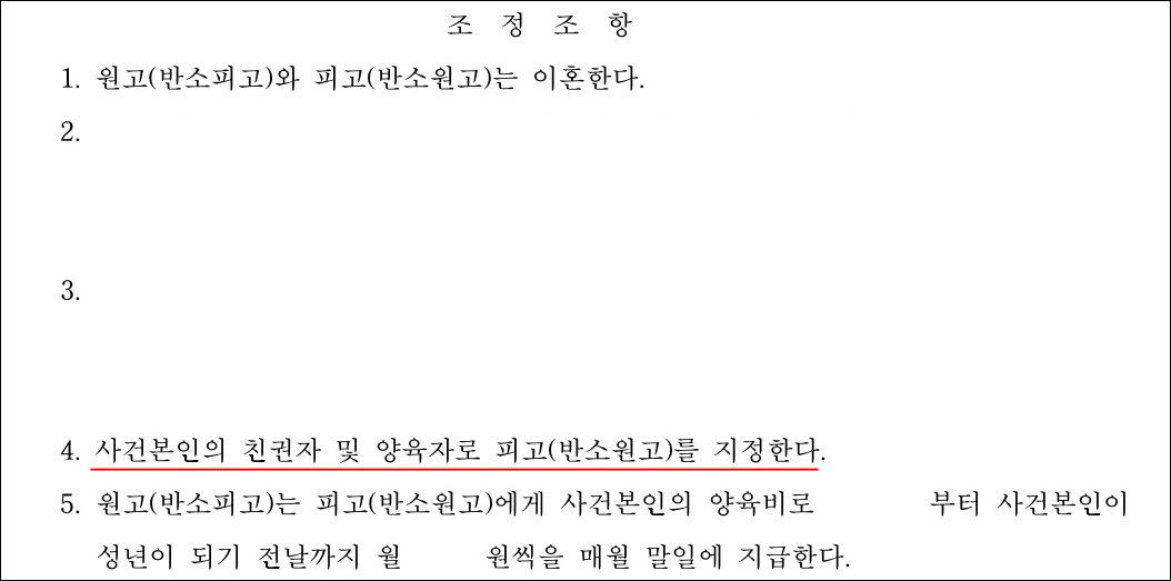 이후 진행된 이혼 조정 절차에서는, 소송 기간 동안 의뢰인[피고(반소원고)]과 함께 안정적인 생활을 유지해 온 자녀의 실제 양육환경이 결정적인 사정으로 고려되었습니다. 이미 형성된 자녀의 생활환경을 변경하는 것이 자녀의 복리에 바람직하지 않다는 점이 조정 과정에서 충분히 반영되었고, 의뢰인 중심의 양육환경이 자녀에게 안정적이라는 점이 인정되었습니다. 그 결과 최종적으로 의뢰인이 자녀의 친권자 및 양육자로 지정되었습니다.