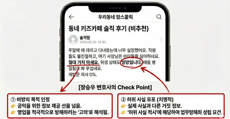 의뢰인 A씨는 키즈카페 직원이 불친절하다는 이유로 맘카페에 비추천 후기를 올렸습니다. "사장님이 애들을 싫어한다", "위생 상태가 엉망이니 절대 가지 마라"는 내용이었죠. 이 글의 파장은 생각보다 훨씬 치명적이었습니다.