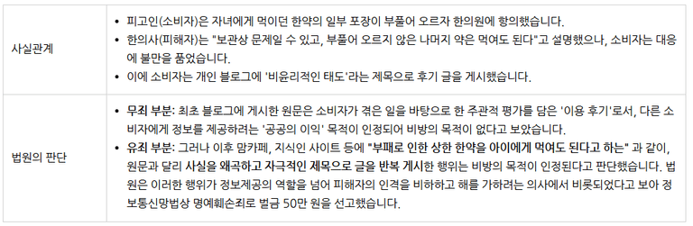 실제 판결 사례 1: 한약 이용 후기 사건 (벌금 50만 원 선고) 대전지방법원-2014노OOOO