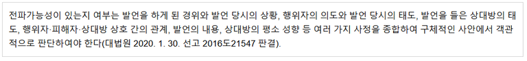 즉, 듣는 사람이 3명이든 300명이든 숫자가 중요한 게 아닙니다. "그 방에 있는 사람들이 다른 사람에게 옮길 가능성이 있는가?" 이것이 핵심입니다. 법원은 실제 사안에서는 아래와 같은 판단기준으로 전파가능성을 판단합니다.