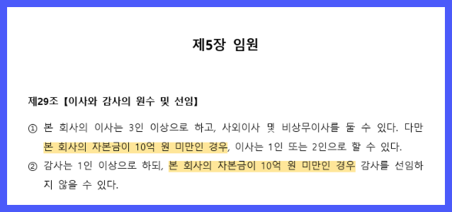 3. 소규모회사 특례를 쓰고 있는지, 정관에 반영돼 있는지 봐야 합니다