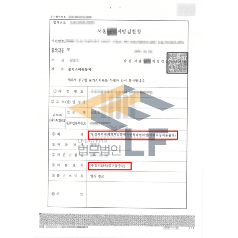 그 결과 의뢰인은 검찰로부터 무혐의 처분을 받을 수 있었습니다.
