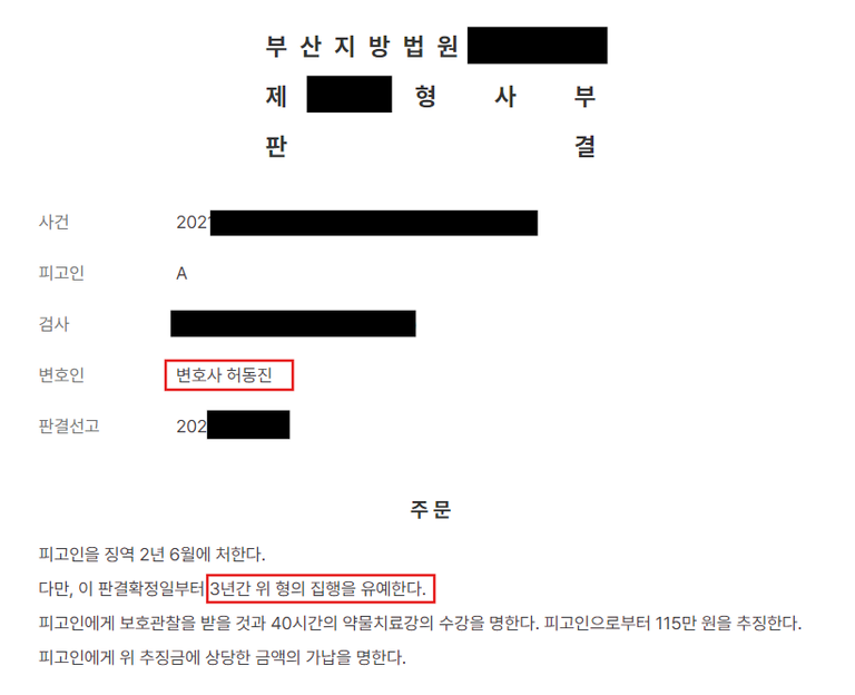 이 사건 재판부는 마약류 범죄에 대한 엄중한 처벌 필요성을 강조하면서도, 피고인인 의뢰인의 범행 동기(단순 투약 목적), 반성 여부, 전과 유무 등을 종합적으로 고려하여 집행유예 3년 및 40시간의 약물치료를 선고하였습니다. 이로써 의뢰인은 재범 방지 및 사회로 정상적으로 복귀할 기회를 얻게 되었습니다.